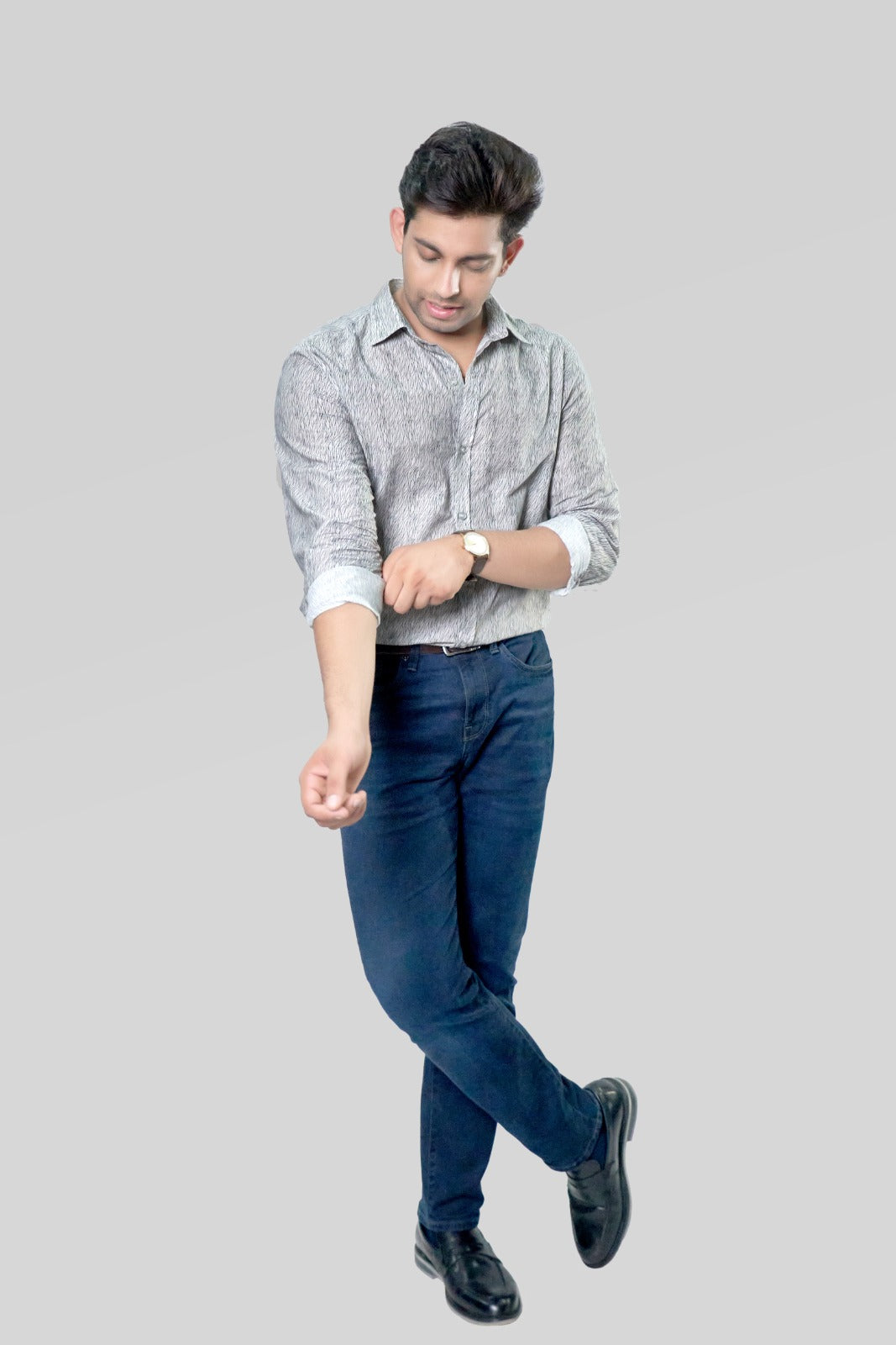 GREY BOTTLE PRINT FULL SLEEVE SHIRT