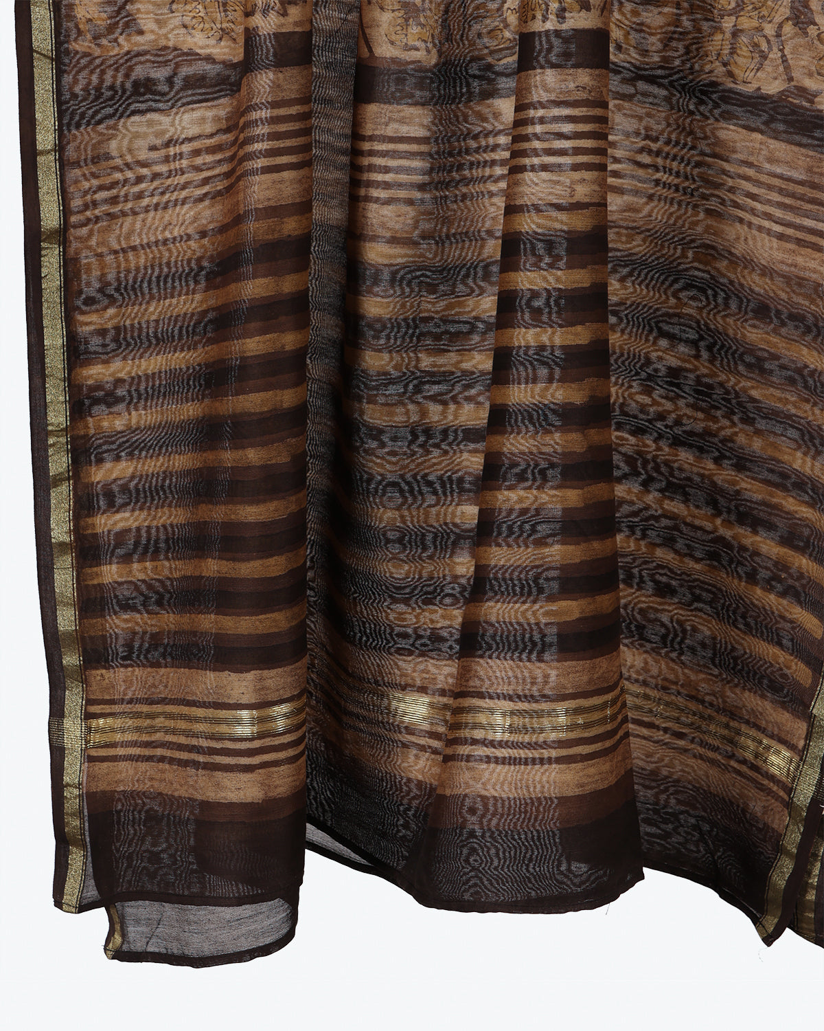 Abstract floral Chanderi Silk dupatta in rusty ocher brown shade with abstract floral detailing and well defined border.