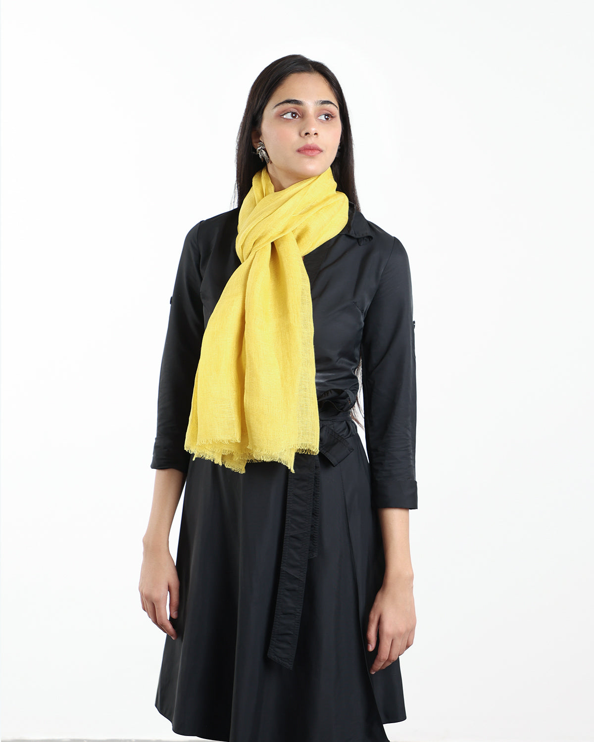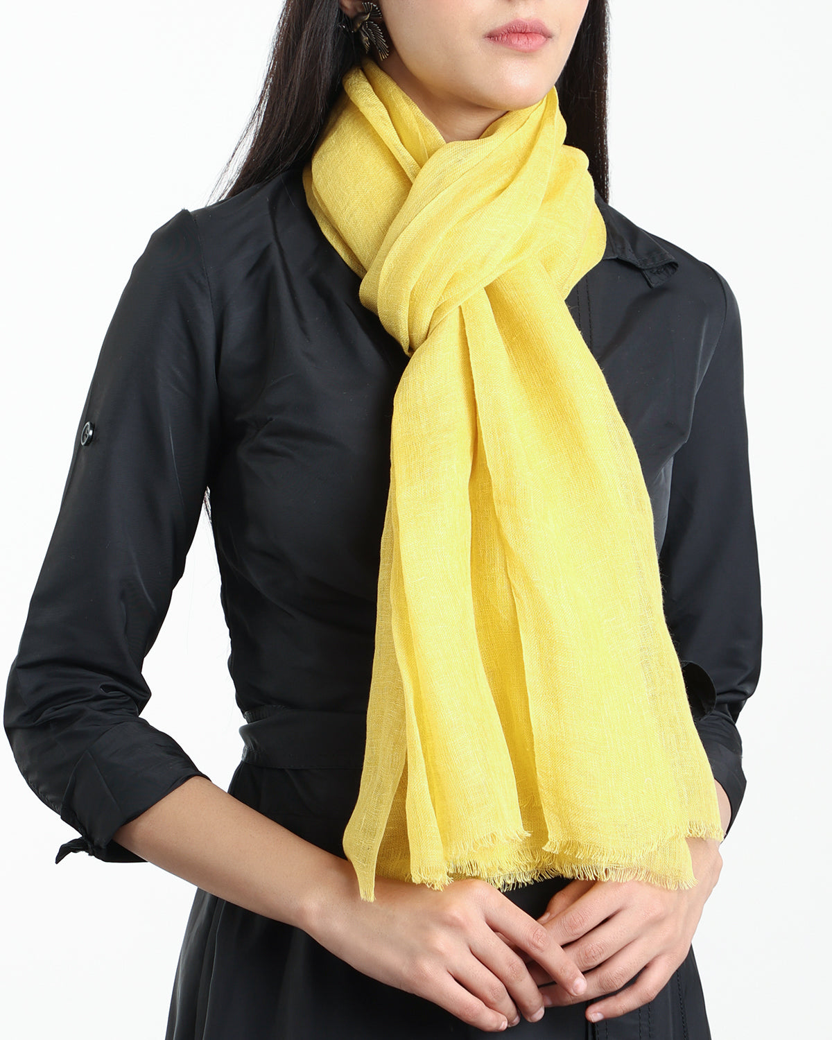 Solid amber yellow scarf in Cotton Linen for an everyday classic look.