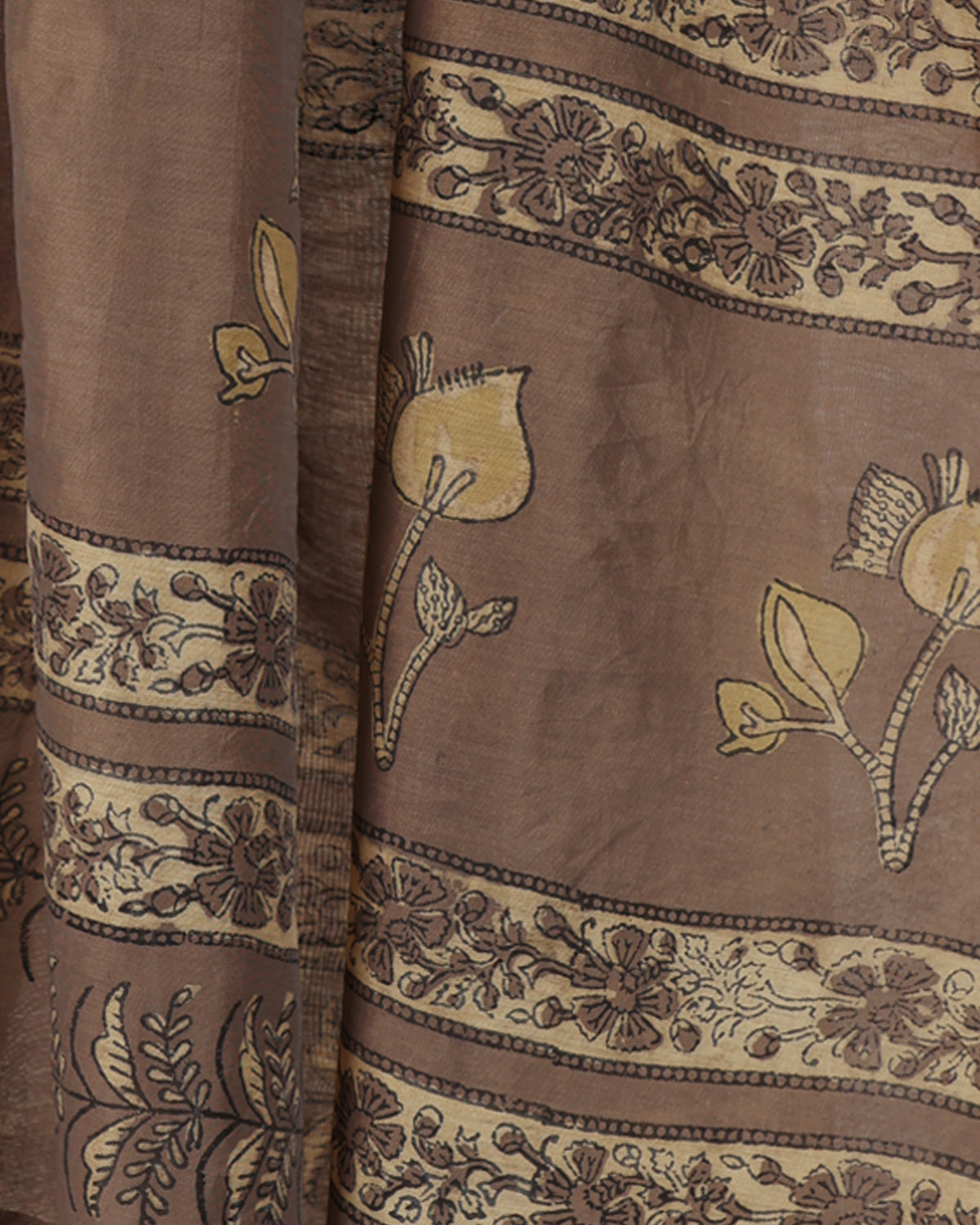 Autumn-inspired dupatta in ash brown color with autumn twig detailing on Cotton.
