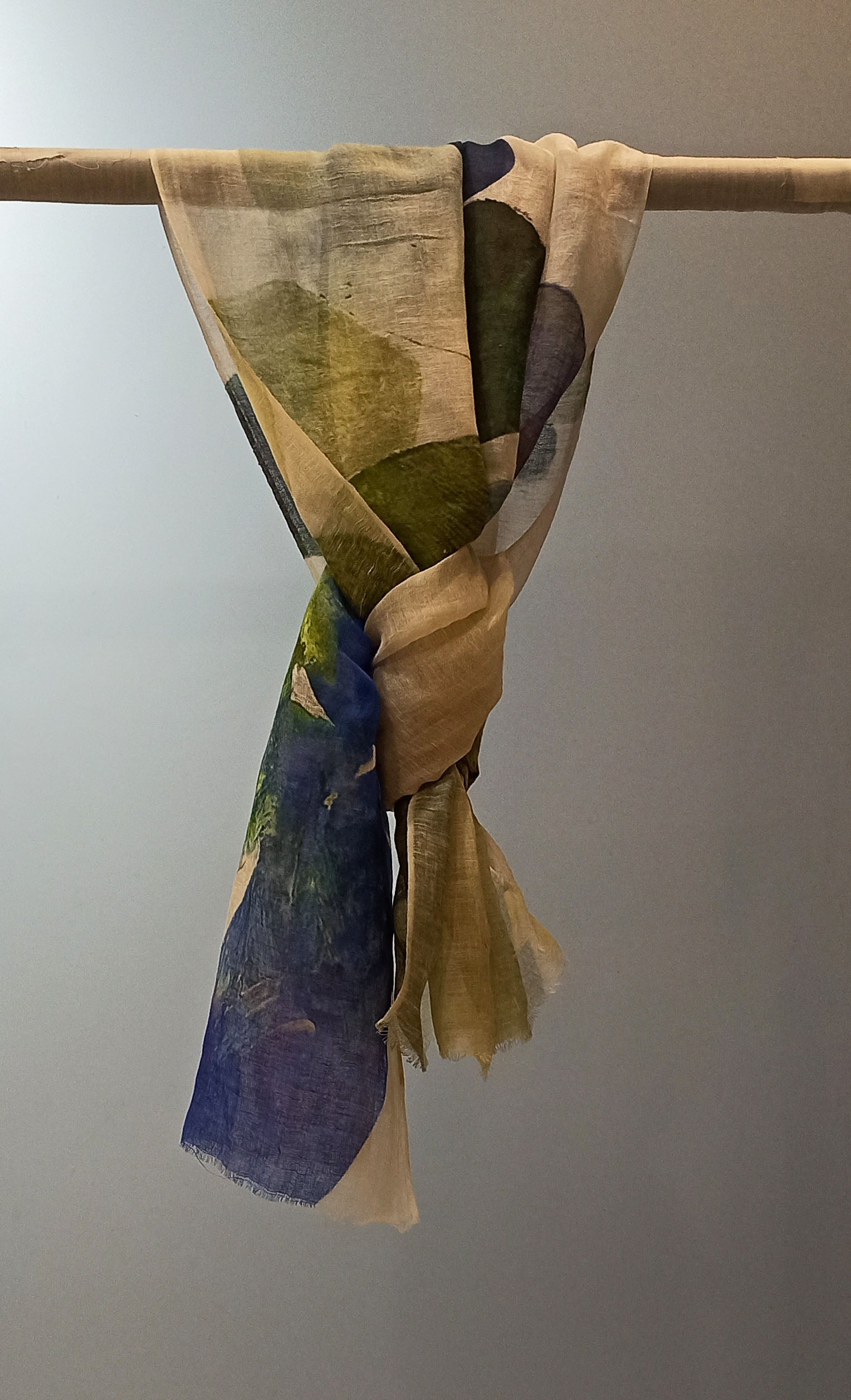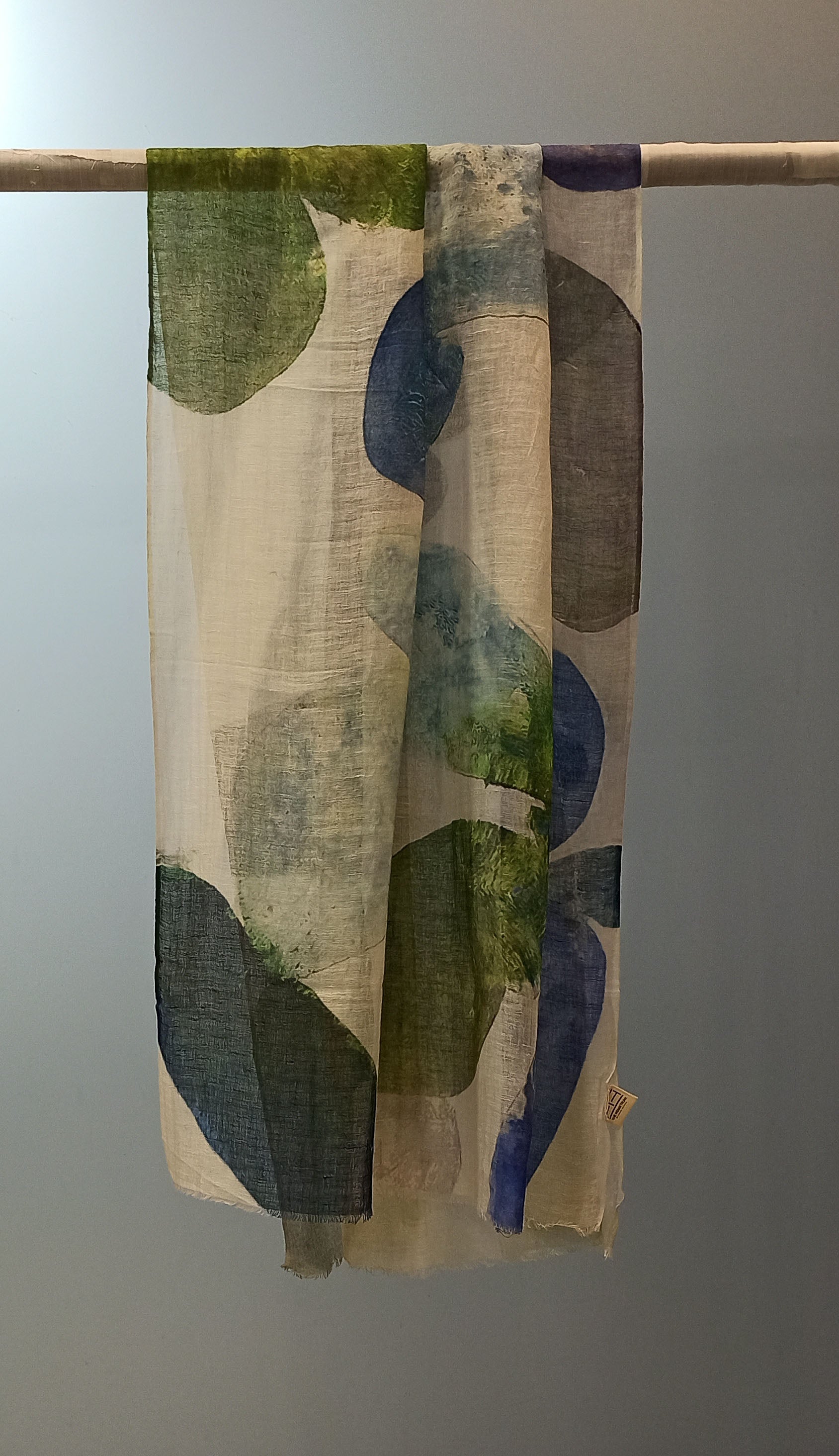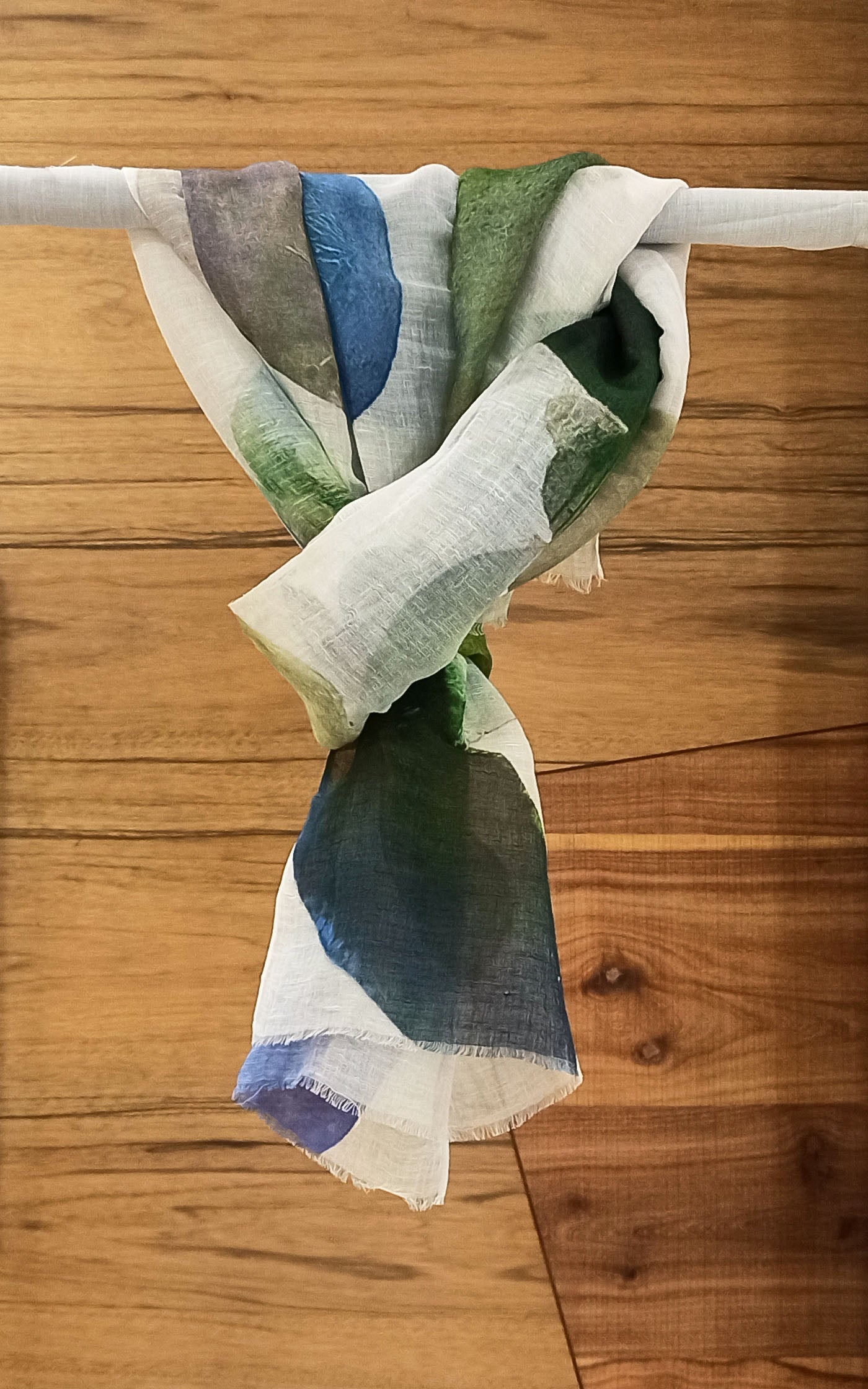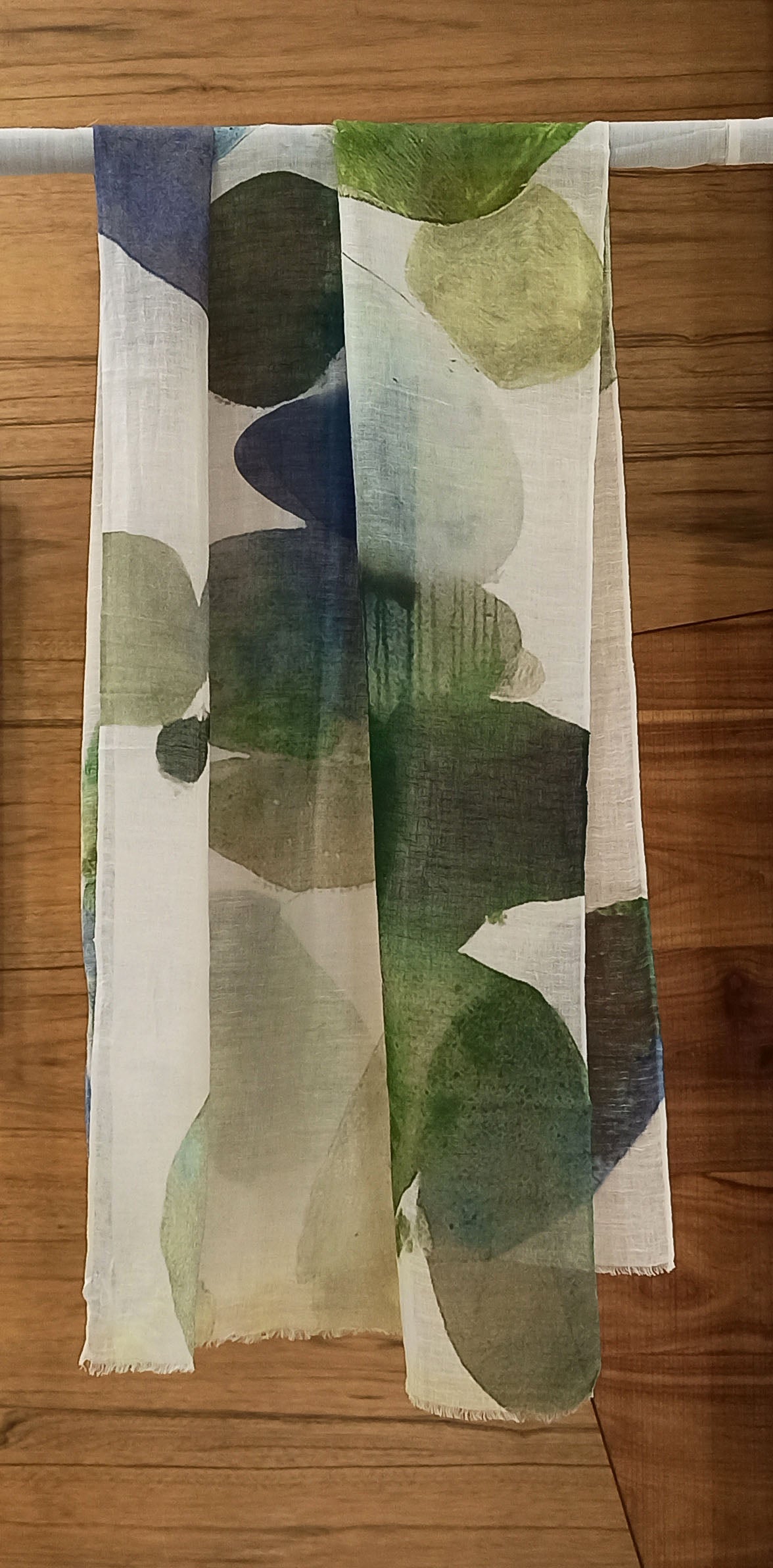 The blue and green splash scarf crafted from lightweight and soft cotton linen for a nice, cozy feel!