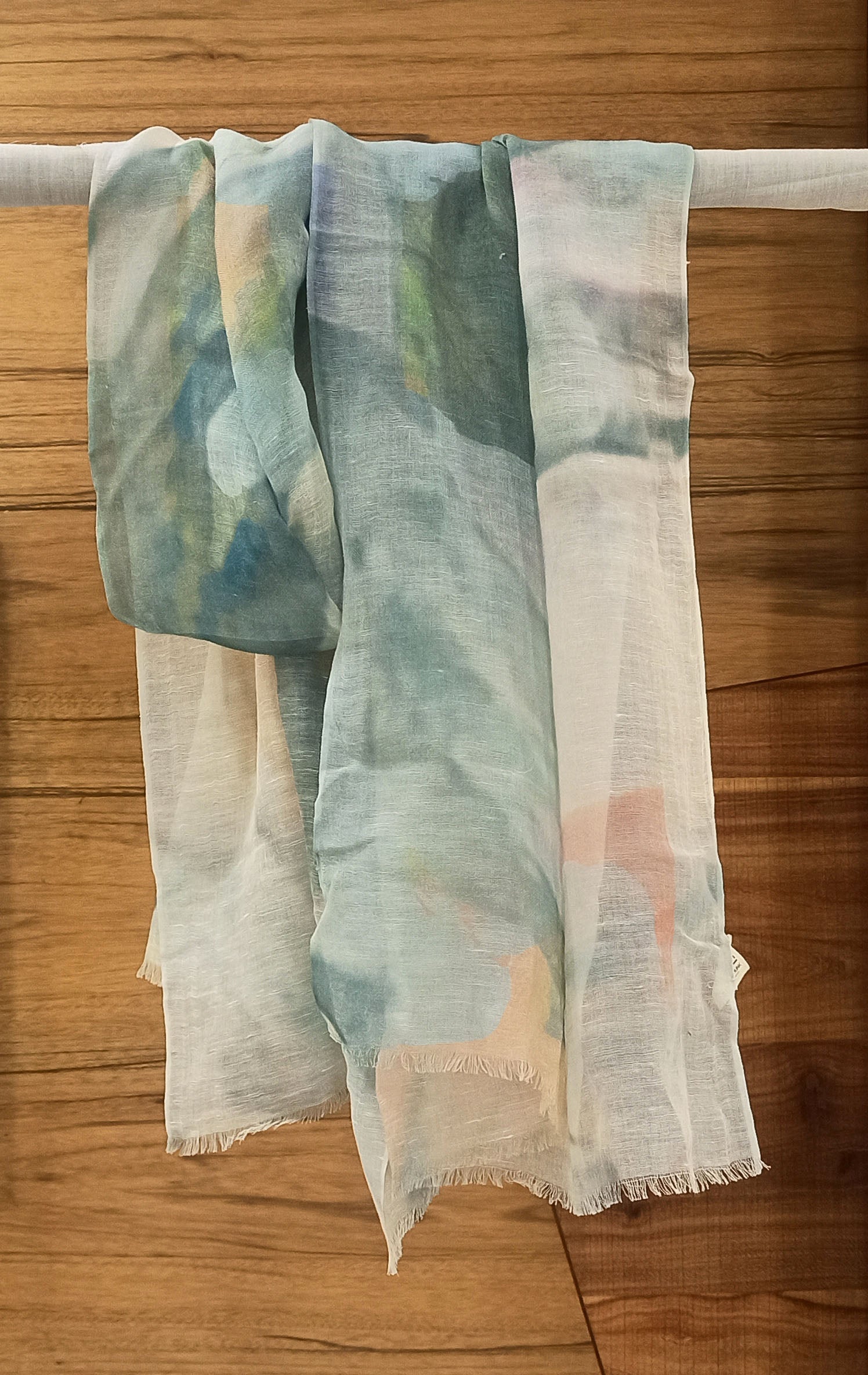 Colorscape-inspired scarf in Cotton Linen with soothing colors for an elegant, poised look.