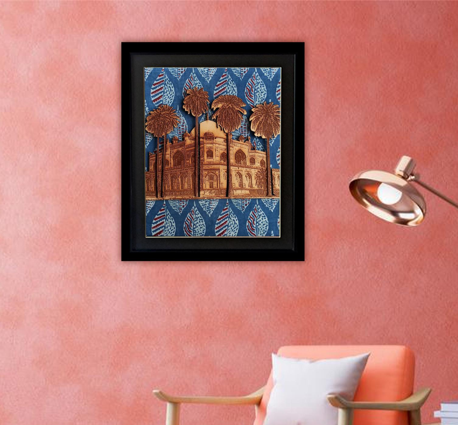 This wall frame of Humayun tomb is a delicate piece made of wood engraving, the cut out pieces put together giving it elevated 3d look. Most suited for your living room or office.