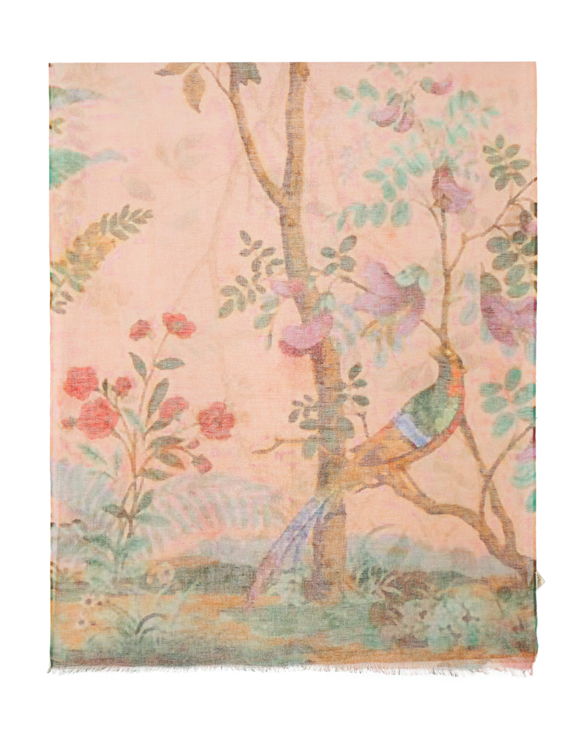 Garden inspired scarf crafted from Cotton linen with flora and fauna prints to take you back to serenity.
