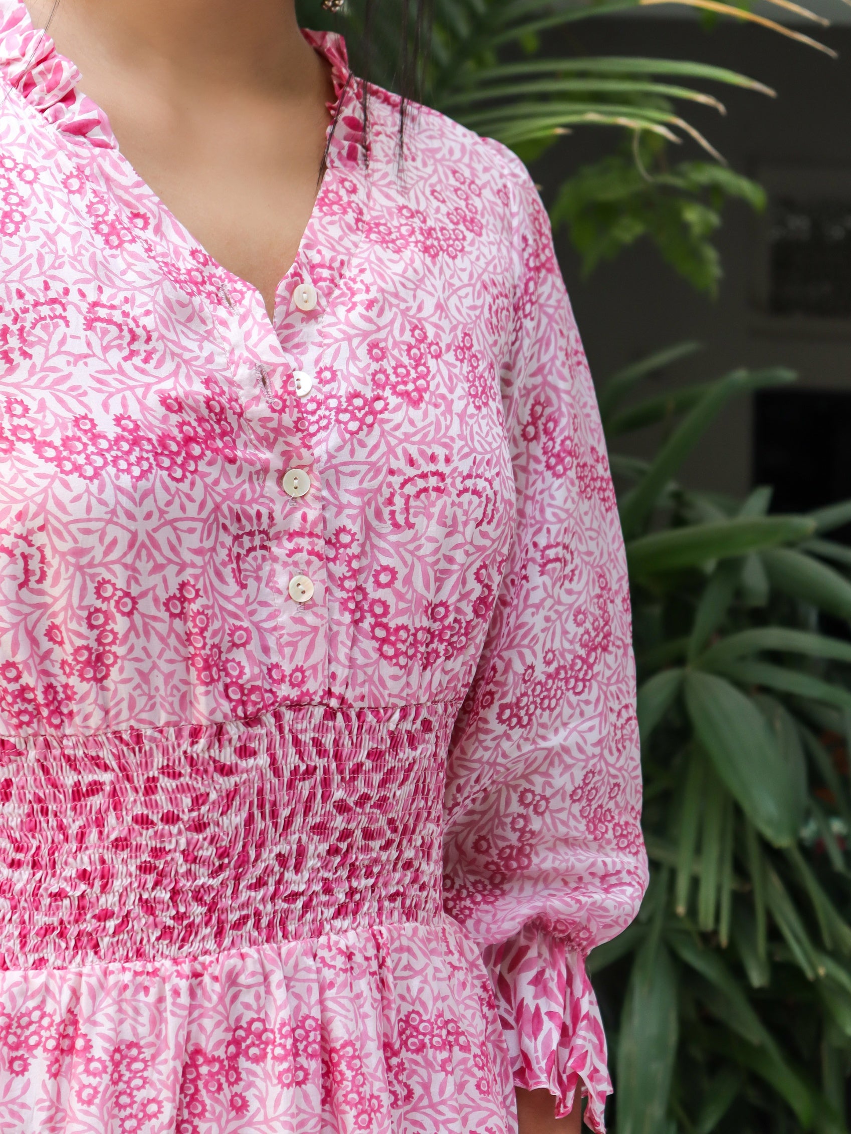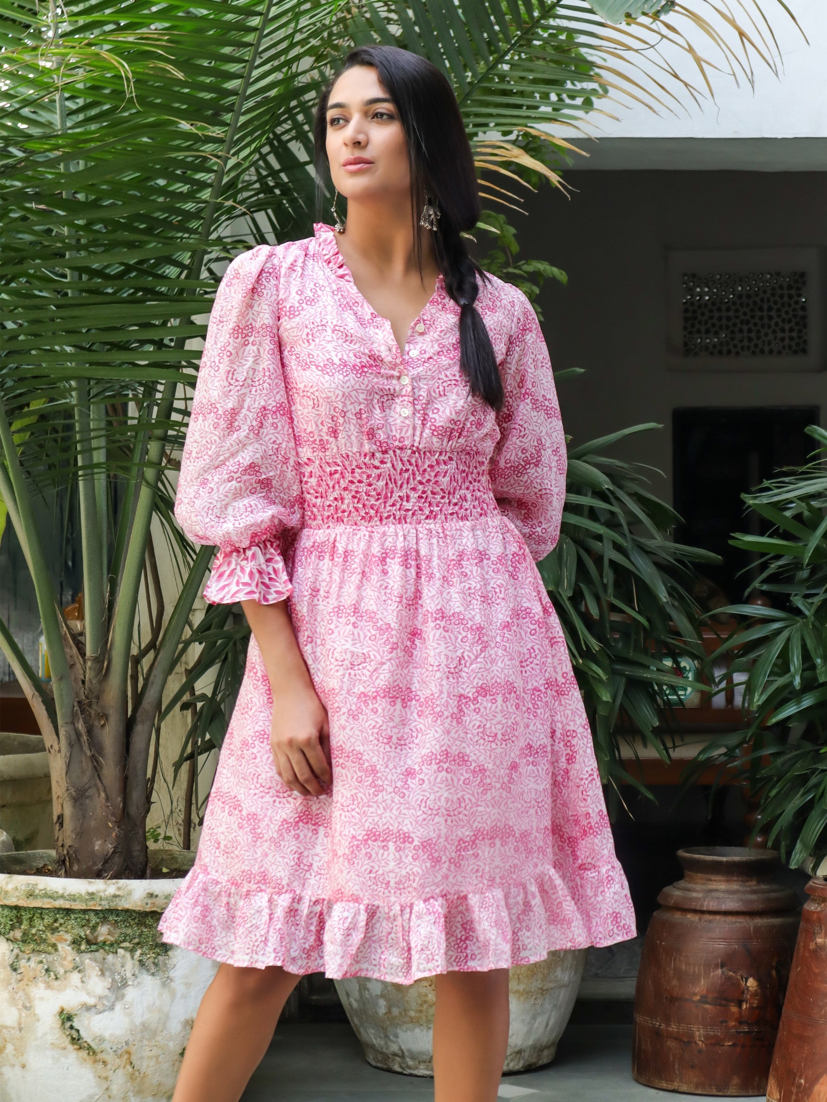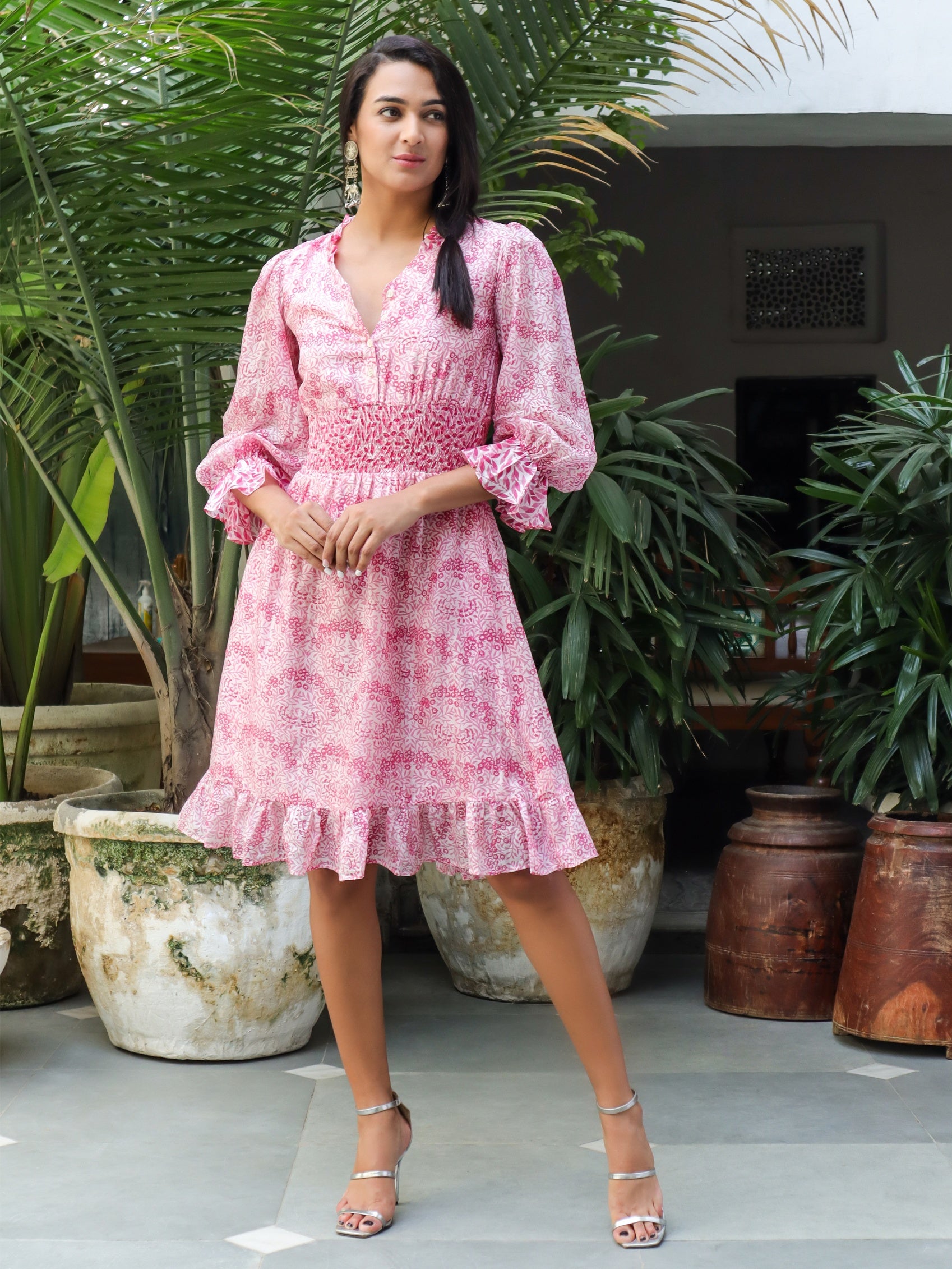 Jade Princess Dress flaunts a charming V-Neck with frill accents along the placket. This flattering dress is cinched at the waist, and features balloon sleeves for a touch of sophistication. Its below-knee length gives you a versatile and stylish look for any event.