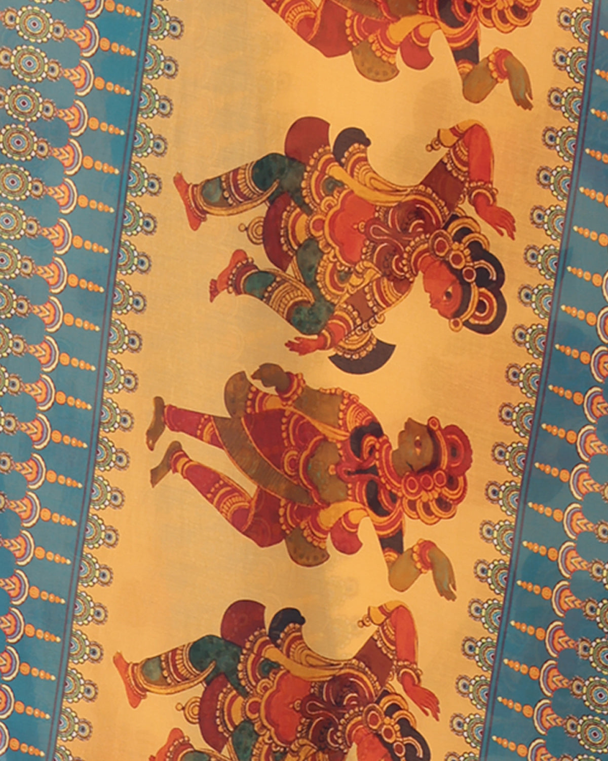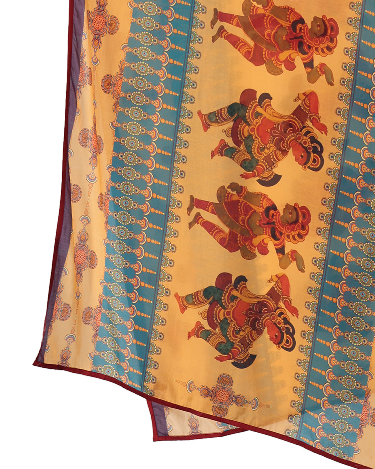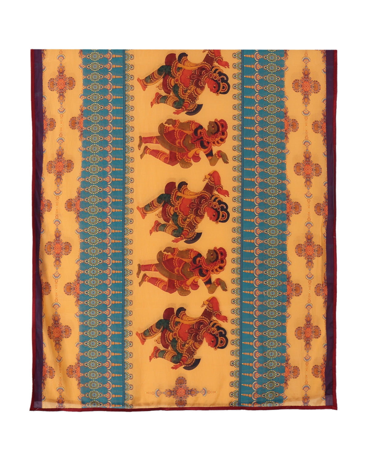 Traditional multicolored dupatta with kalamkari print crafted from Modal, embodying a hint of history!