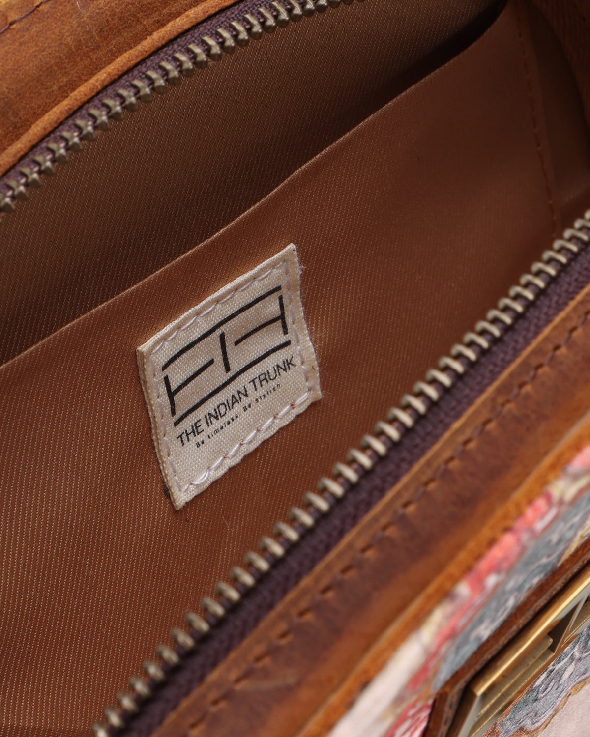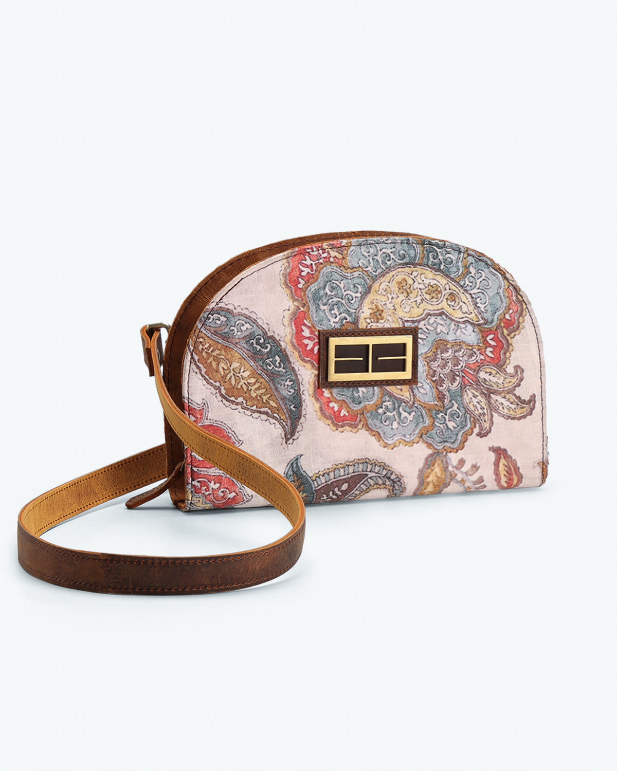 Sleek sling bag with leather details, inside patch pocket and zip pocket with main zip closure