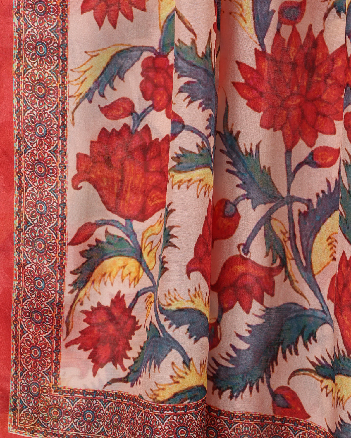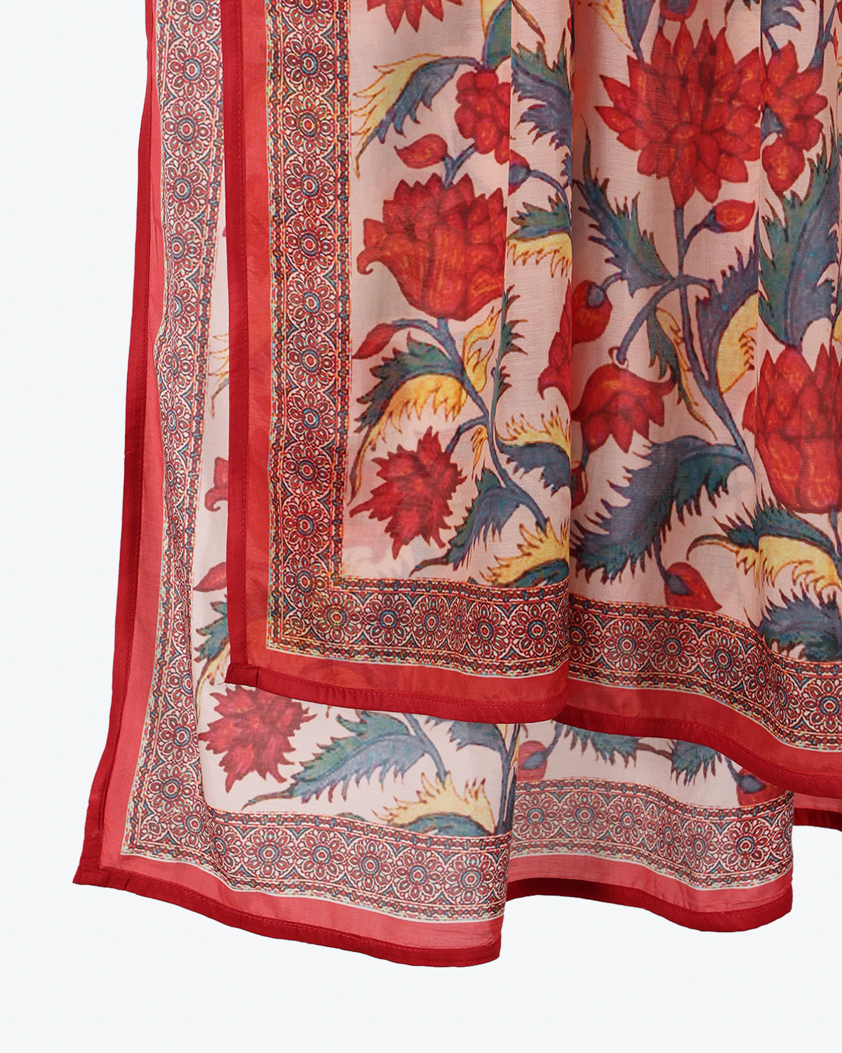 Lotus-inspired lotus garden dupatta in pomegranate red crafted from warm Modal Silk.