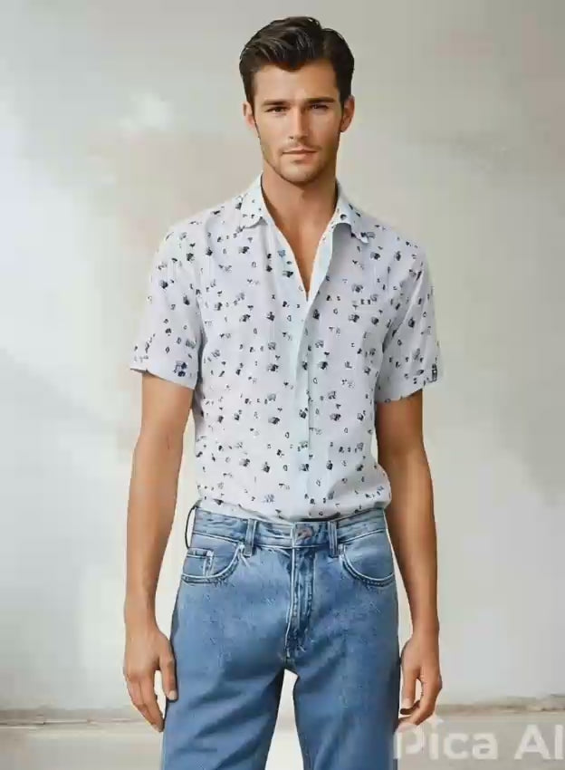 Men’s Printed Bamboo Cotton woven polo. this short-sleeve polo shirt is crafted from a breathable blend of bamboo, cotton. The minimal all-over print adds just the right amount of character. Designed for all-day comfort with a tailored-yet-easy fit, it’s your go-to for both casual Fridays and weekend getaways.