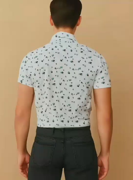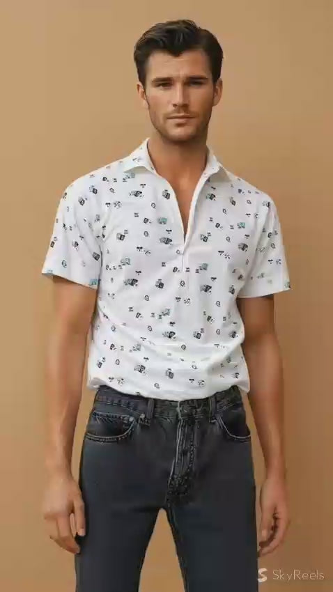 Men’s playing cards Printed half Sleeve Woven Polo. Relaxed silhouette for effortless wear. Classic polo collar with zip closure. Short sleeves for a cool, casual look.