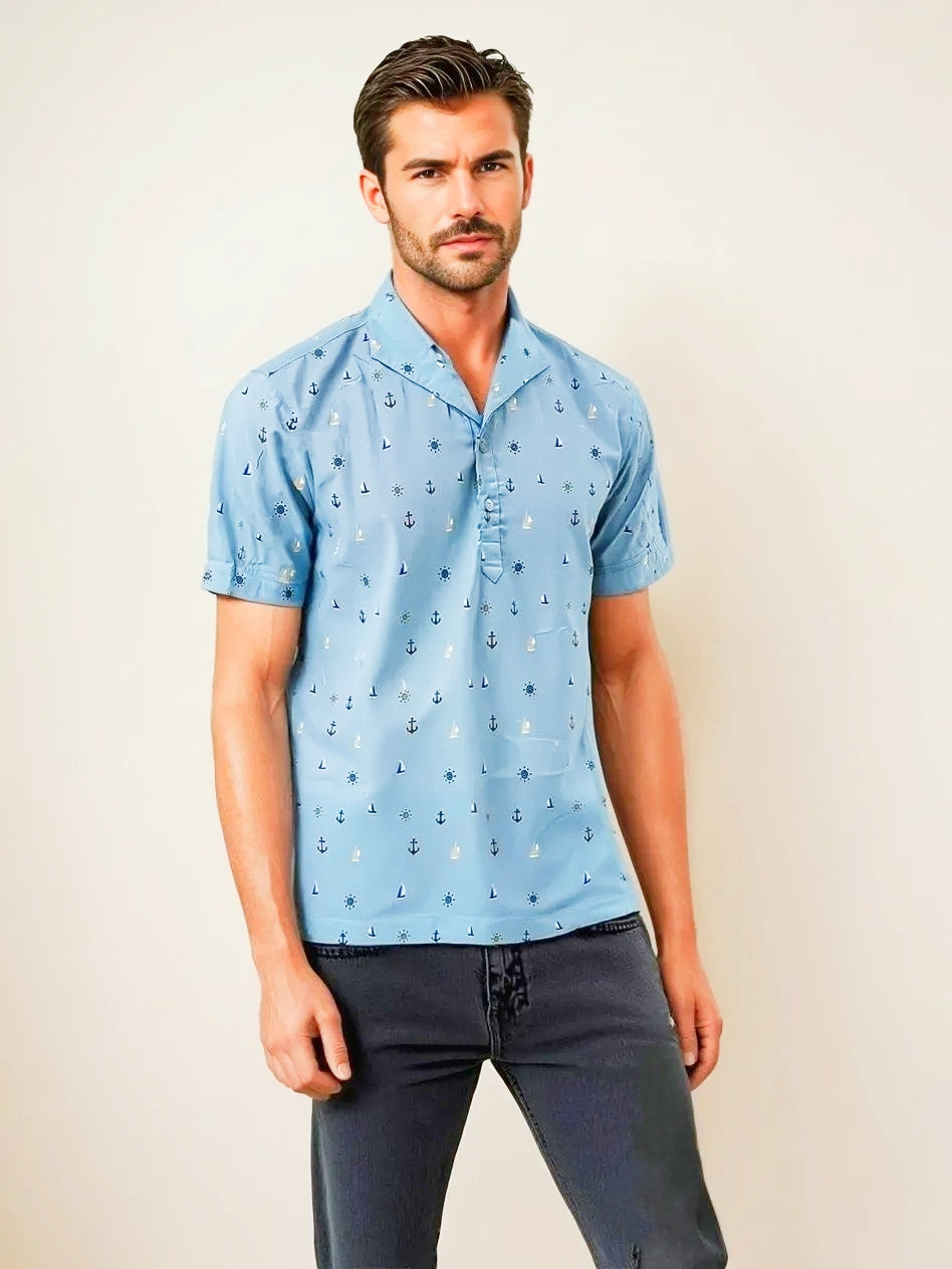 NAUTICAL PRINT WOVEN POLO