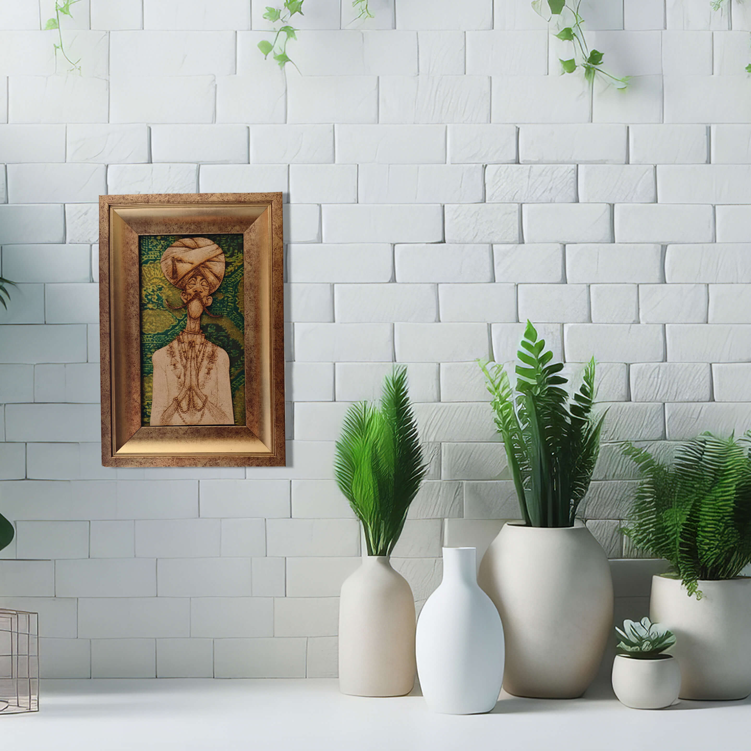 KHAMMA GHANI - Rajasthani old man in welcoming pose wood engraved painting Frame