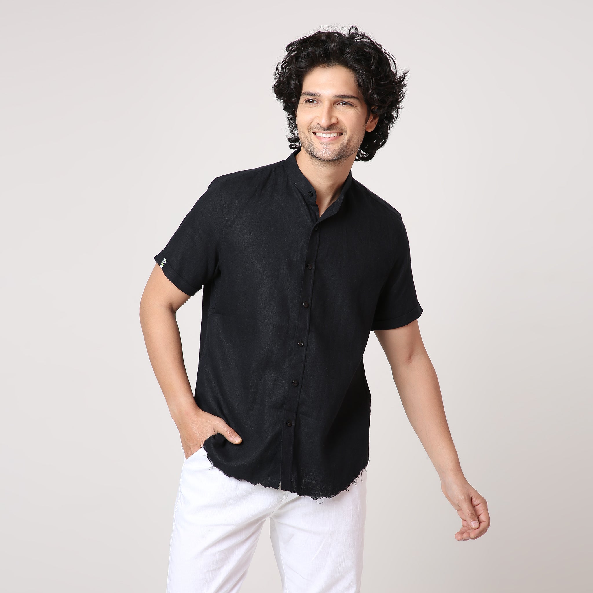 BLACK AND WHITE ABSTRACT PRINT SHIRT