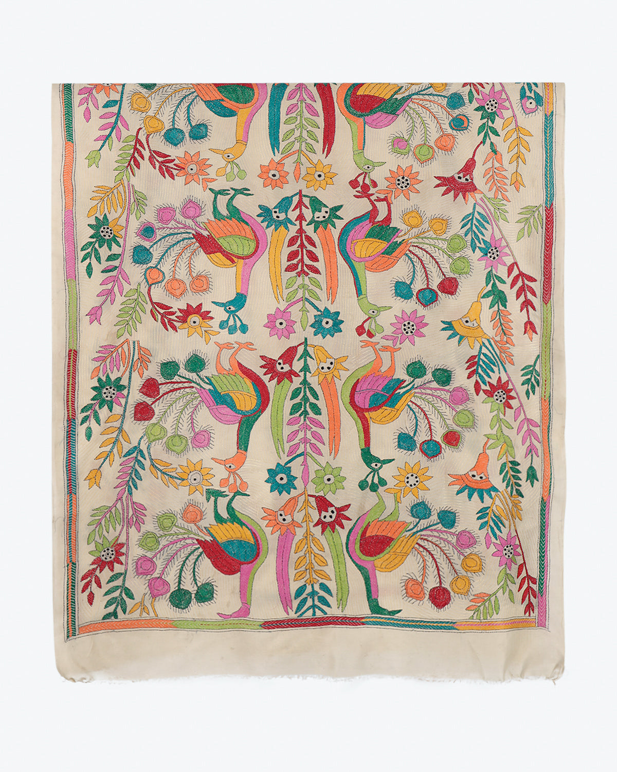 Mughal Floral Dupatta (Teal Blue) With Embrodery