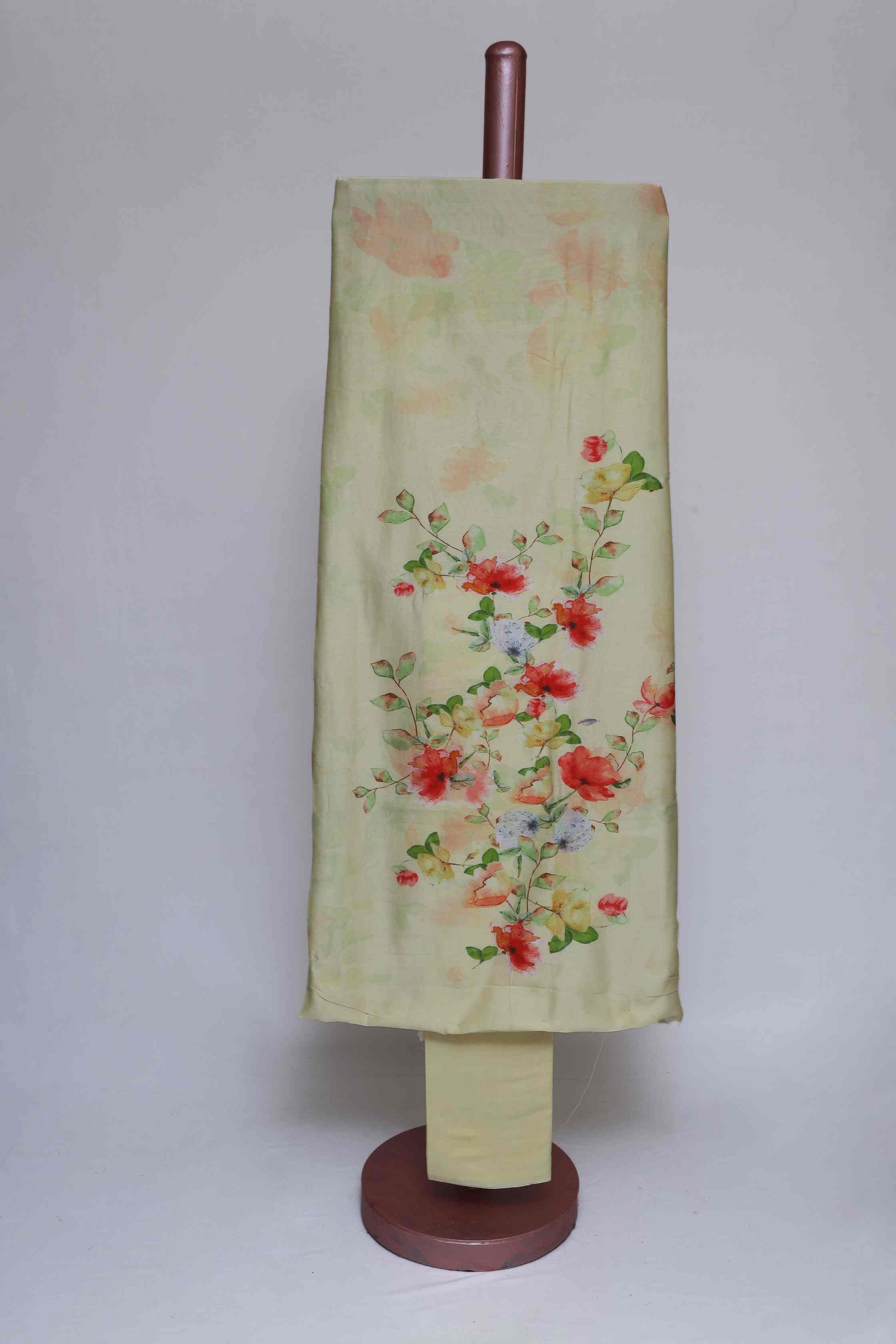 PASTEL YELLOW PRINTED CHANDERI & EMBROIDERED UNSTITCHED SUIT SET