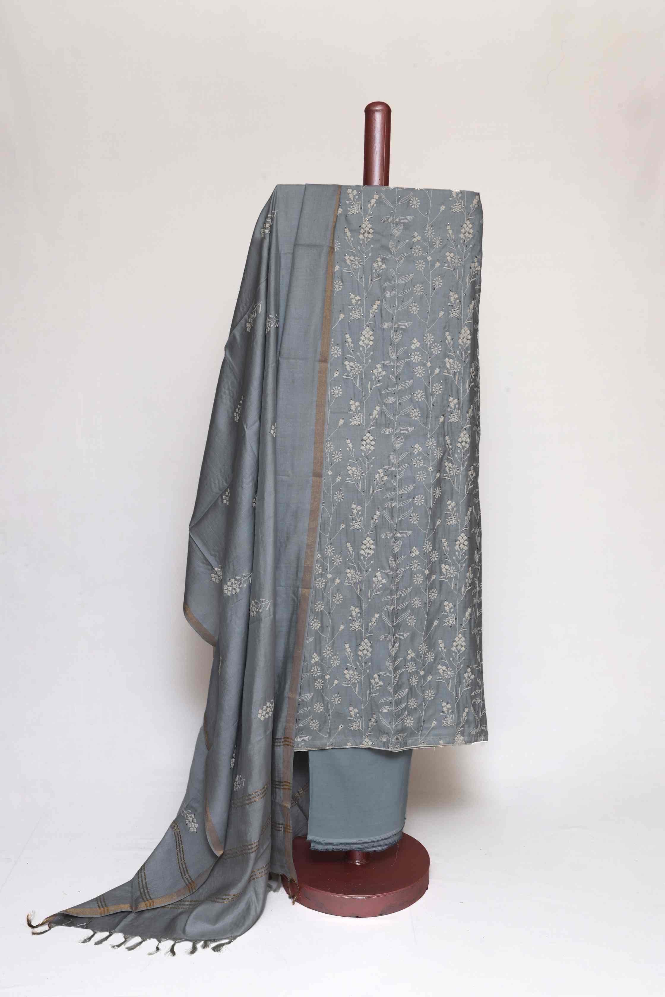 FAUN EMBROIDERED COTTON SILK UNSTITCHED SUIT SET