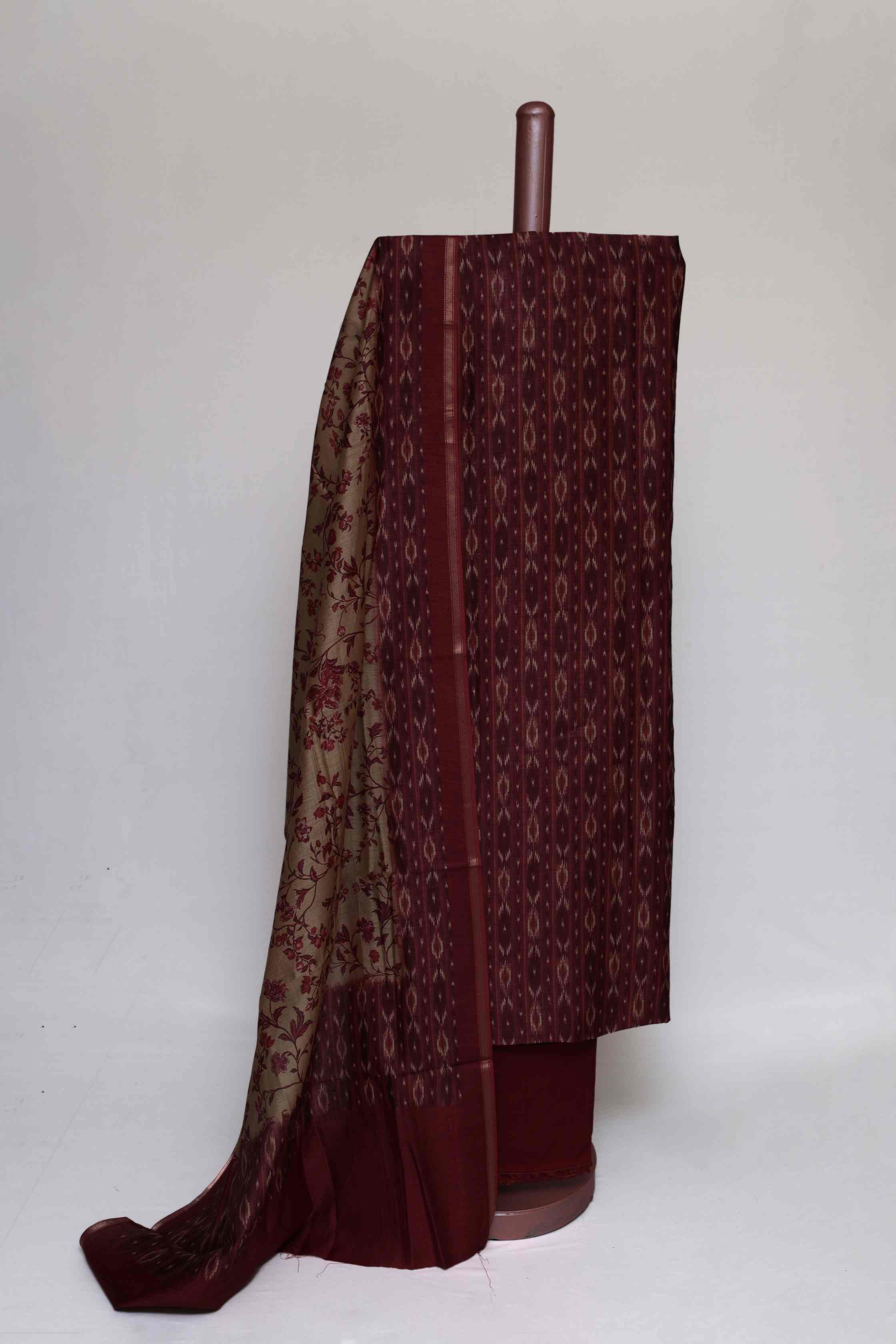 MAROON RED PRINTED TUSSAR SILK UNSTITCHED SUIT SET