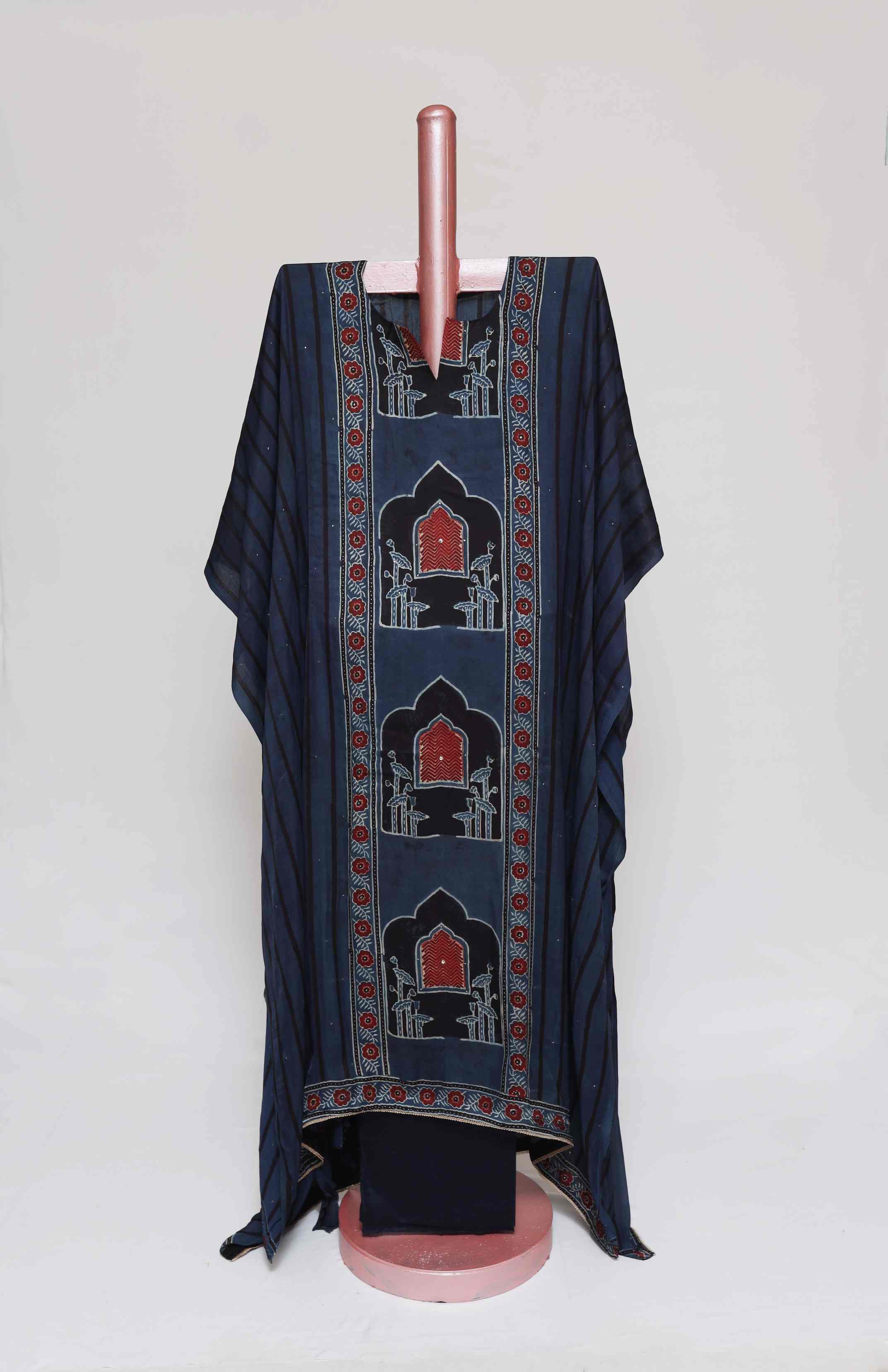 NAVY BLUE PRINTED MODAL SILK SEMI STITCHED SUIT SET