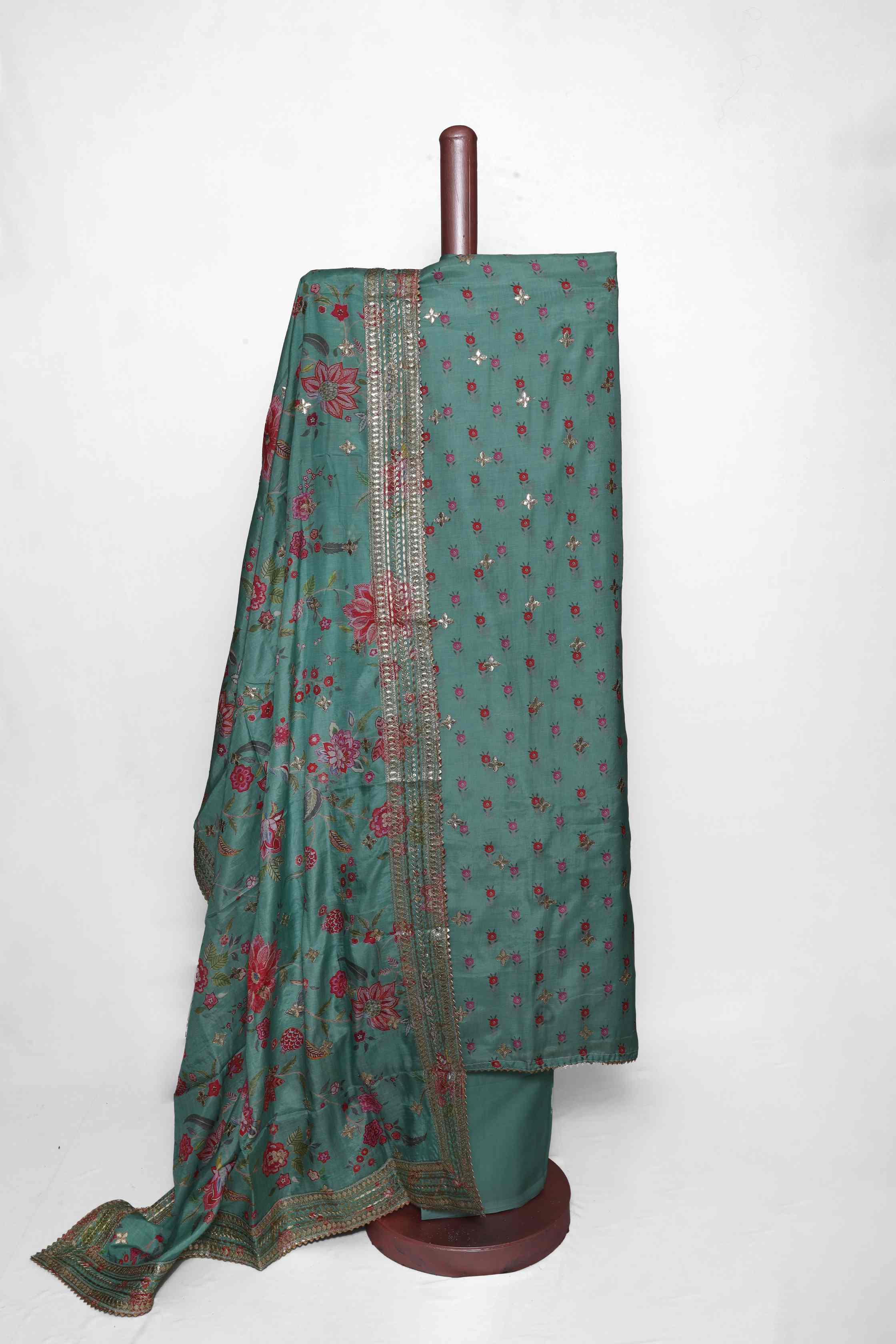 JADE GREEN PRINTED MODAL SILK UNSTITCHED SUIT SET