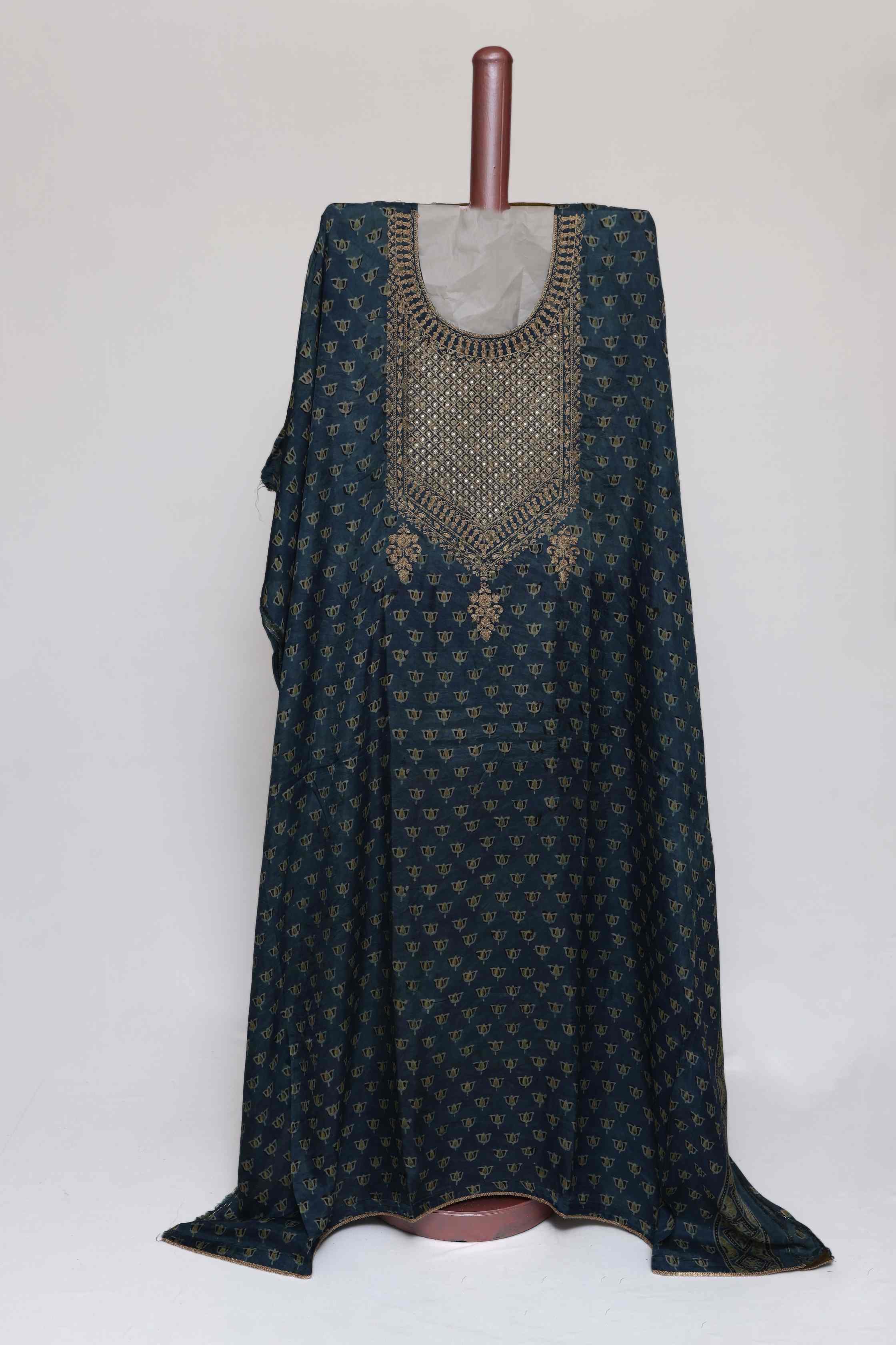 TEAL BLUE PRINTED MODAL SEMI STITCHED SUIT SET